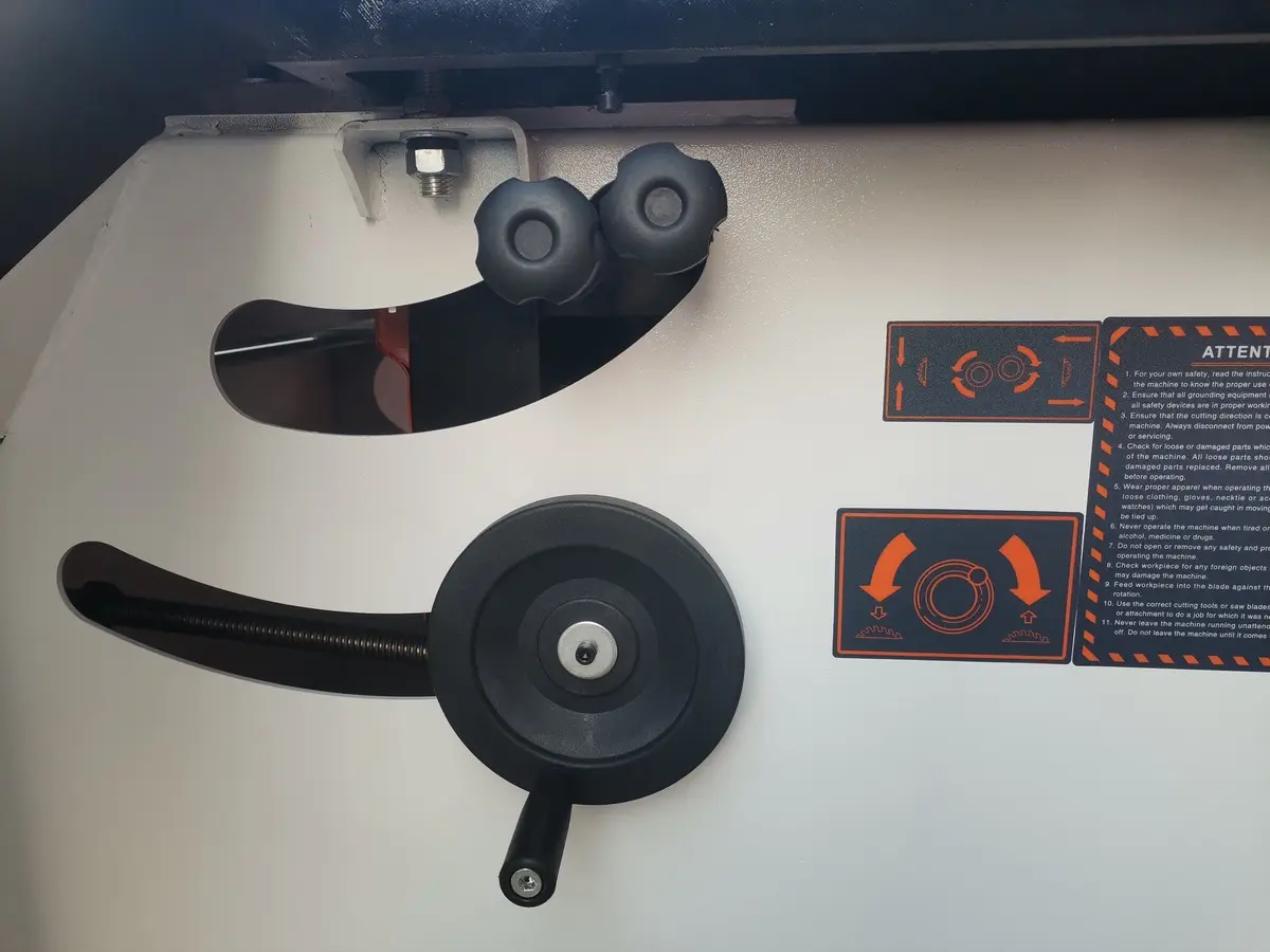 НАСТРОЙКА ПИЛ Удобная настройка работы подрезной и основной пил на боковой стенке станка. |
