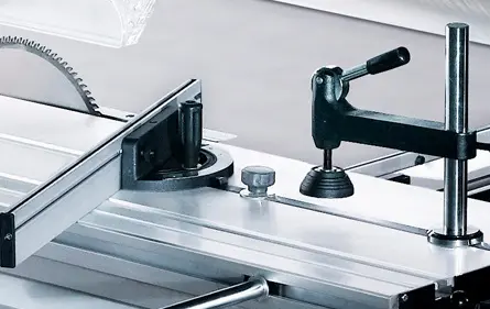 ЭКСЦЕНТРИКОВЫЙ ПРИЖИМ И ДОПОЛНИТЕЛЬНАЯ ЛИНЕЙКА В базовую комплектацию станка входит механический эксцентриковый прижим и дополнительная линейка для угловых резов. |