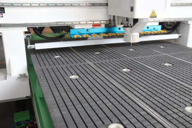 ВАКУУМНЫЙ РАБОЧИЙ СТОЛ С «Т» - ПАЗАМИ ДЛЯ МЕХАНИЧЕСКОГО КРЕПЛЕНИЯ Алюминиевый рабочий стол, покрытый износостойким пластиком имеет Т-пазы для механического крепления заготовок с помощью струбцин и подготовку под вакуум, которая при подключении вакуумного насоса обеспечивает надёжное крепление заготовок. |