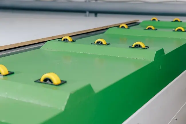РОЛИКИ ПОДАЧИ МАТЕРИАЛА И СИСТЕМА АВТОМАТИЧЕСКОЙ РАЗГРУЗКИ СТОЛА Для удобства смены материала на стол установлены специальные ролики, которые облегчают оператору процесс загрузки листов. Так же на станке реализована система разгрузки, которая исключает попадание стружки под заготовку, что существенно влияет на качество обработки. Одновременно происходит сталкивание обработанных деталей и очистка стола от стружки. Всё это в целом ускоряет процесс производства. |