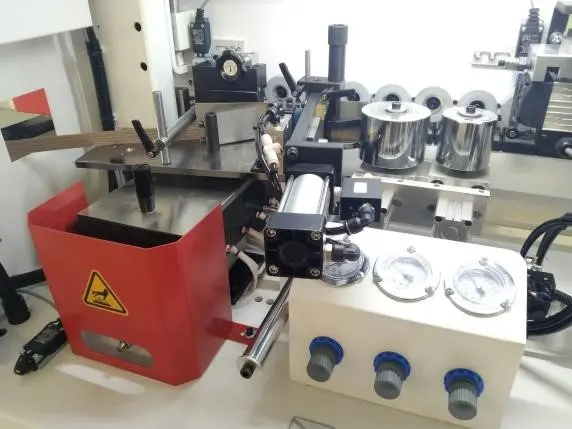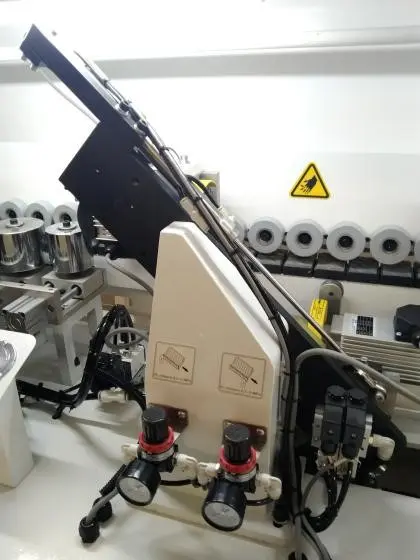 Предназначен для облицовывания прямолинейных кромок плитных материалов рулонными кромками АБС, ПВХ и полосовым кромочным материалом толщиной до 3 мм.