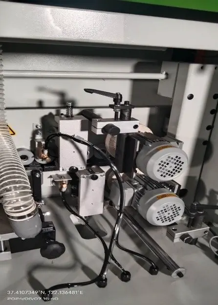 - Фрезерный узел для снятия свесов с вертикальной и горизонтальной настройкой, с двумя высокочастотными двигателями по 0,75 кВт. Радиус фрезы 2мм;